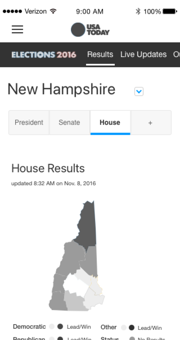 We created an experience that had two levels, one for users that wanted a summary of what was happening with the election and anotherke for those who wanted a deeper dive into the details.